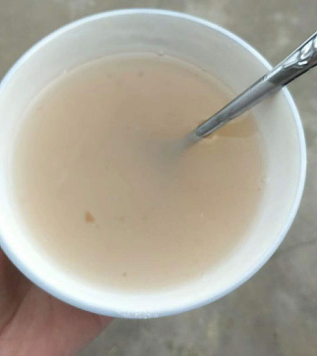 葛粉怎樣吃呢?很簡(jiǎn)單,20克左右的葛粉,放入碗內(nèi),加入少量冷水,把塊狀的野生葛根粉攪拌均勻,不得有顆粒(不然后面開水沖泡時(shí)就容易有半生不熟的葛根粉小團(tuán))。然后加入剛剛燒開的沸水(一定要?jiǎng)倓偀_的沸水),慢慢倒入,一邊用湯勺攪拌葛根粉,稀釋葛粉的濃度。一般開水倒入葛根粉的三倍左右,使勁攪拌成粘稠的葛根粉就可以吃了。注意:葛粉的顏色會(huì)由白色變成了烏青色,如果碗內(nèi)還有白色的葛粉,可以放進(jìn)微波爐里高火一分鐘就行了。沖泡葛粉的時(shí)候,可以根據(jù)個(gè)人愛好加入紅糖、蜂蜜之類的這些東西。